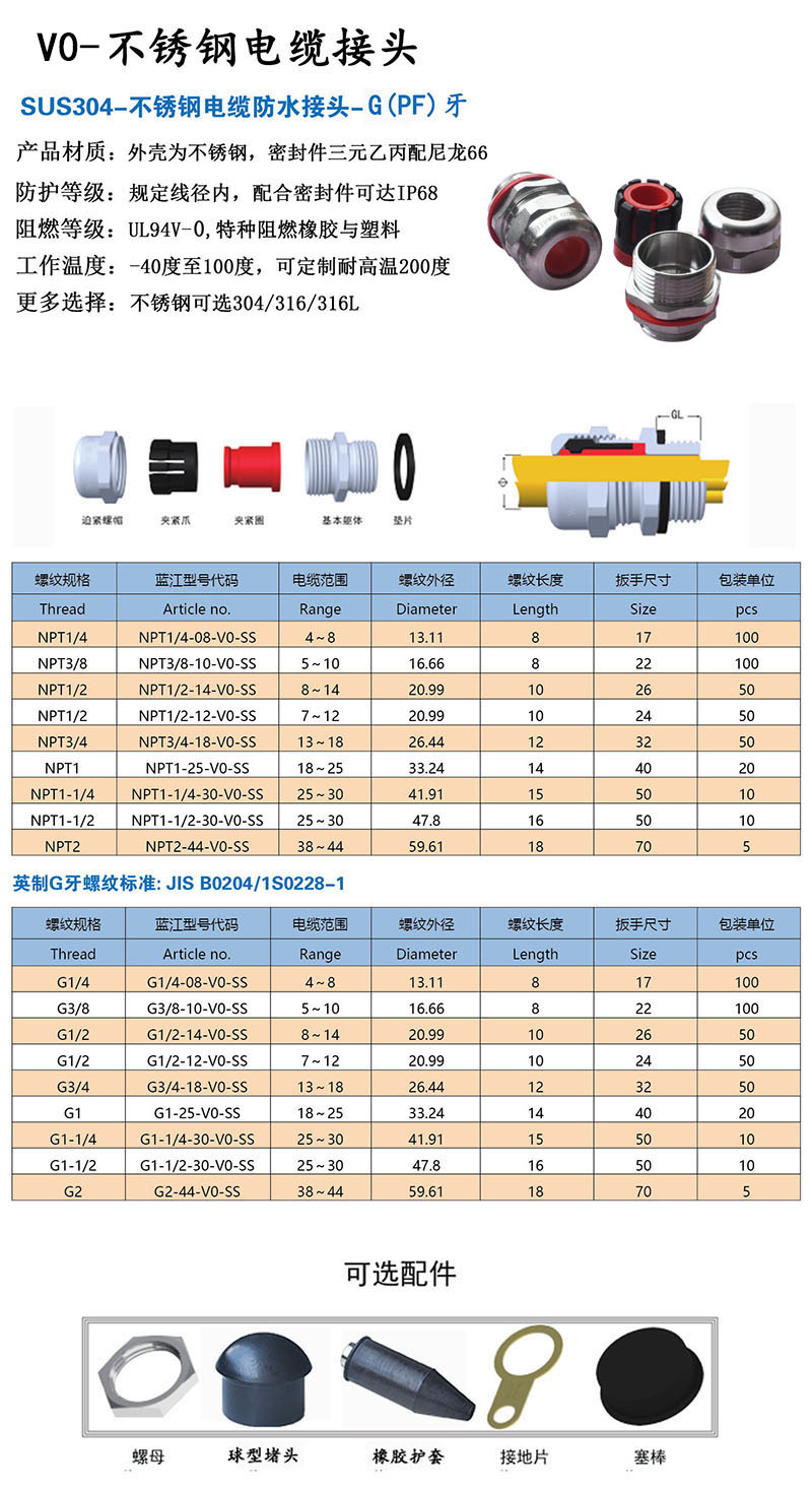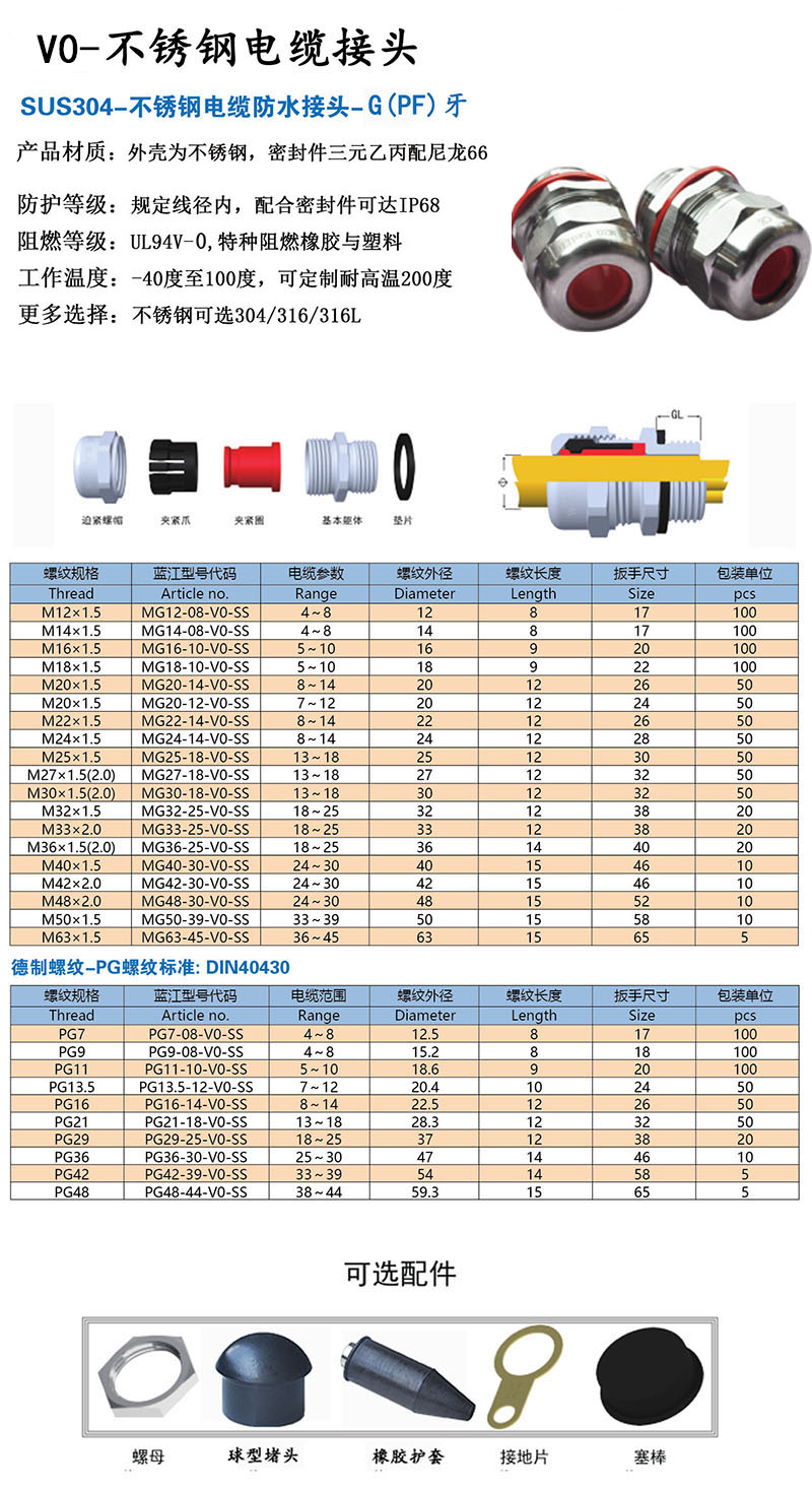 V0阻燃不锈钢电缆防水接头
